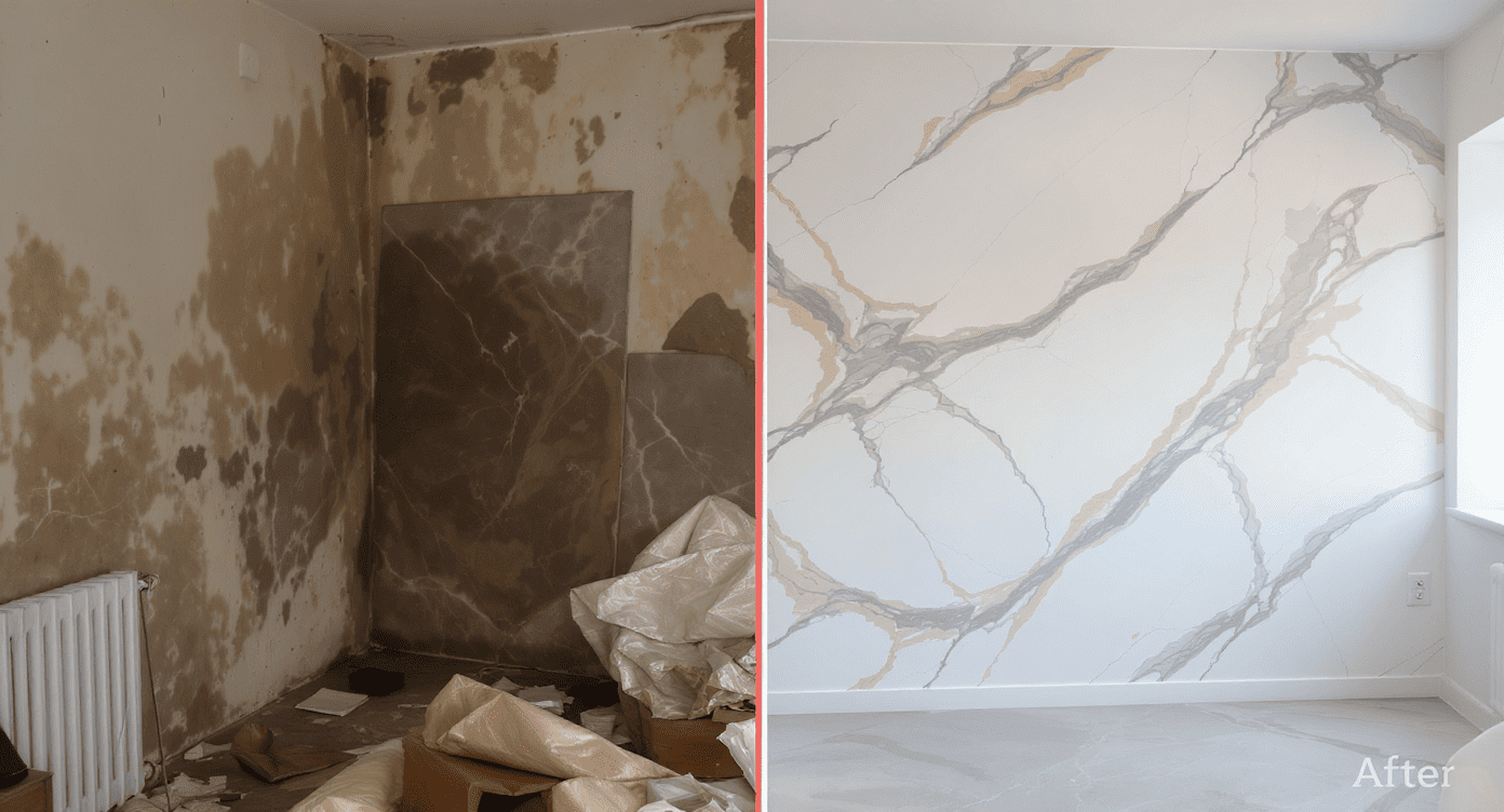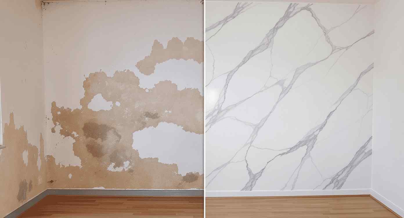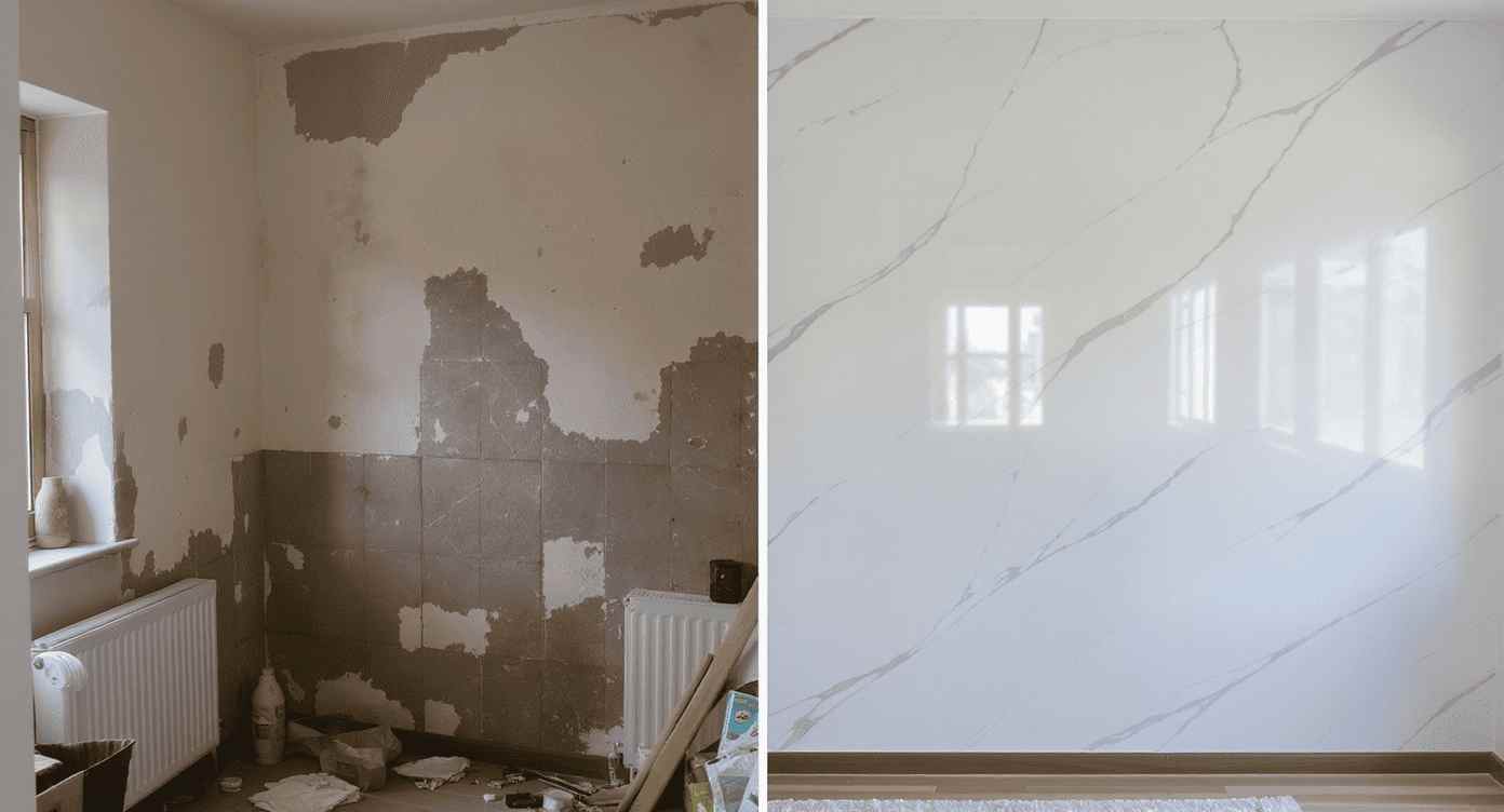 С помощью гибкого мрамора можно создать эффектную мраморную стену в гостиной, визуально расширить пространство в ванной, оформить изголовье кровати или даже сделать креативные потолочные решения.